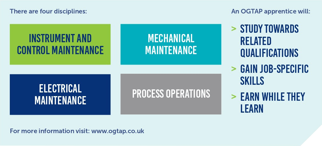 The Oil and Gas Technical Apprentice Programme (OGTAP) is managed by OPITO, the skills organisation for oil and gas, and the Engineering Construction Industry Training Board (ECITB). OGTAP is a 3 year 9 month scheme, split into 2 stages. Apprentices spend time both at college and at one of the sponsoring companies, where they receive on the job training. Apprentices are given the opportunity to gain recognised qualifications, combined with practical training with some of the most innovative oil and gas companies in the world.